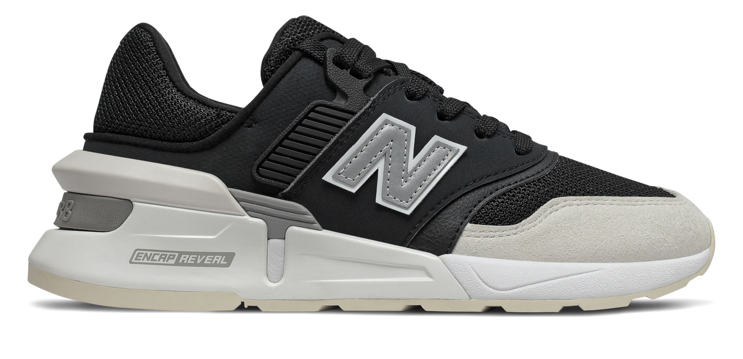 New Balance 997 Sport Mens Black White Suede Textile Sneaker
